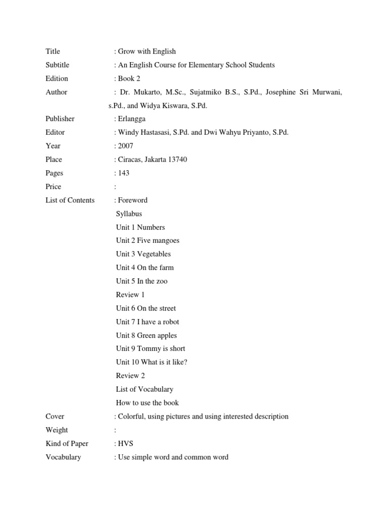 Jual produk buku bahasa inggris untuk sd murah dan terlengkap. Silabus tik sd ktsp tahun terbit 2012 dari penerbit erlangga dalam format pdf dapat diunduh di sini. The english course book grow with english. Daftar dan dapatkan penawaran diskon dan buku buku terbaru dari kami. Silabus tik sd ktsp tahun terbit 2012 dari penerbit erlangga dalam format pdf dapat diunduh di sini. Jual grow with english book kelas 4 sd ktsp bhs inggris penerbit. Inilah pdf buku grow with english kelas 2 2006 penerbit erlangga. Mar 08, 2020 · grow with english book 1 ktsp 2006. Buku bahasa inggris kelas 4 sd erlangga pdf. 37 000 jl 2 kelas 2 rp. Peta konsep jilid 1, klik di sini jilid 2, klik di sini jilid 3, klik di sini jilid 4, klik di sini jilid 5, klik di sini jilid 6, klik di sini. Buku bahasa inggris erlangga grow with english untuk kelas 4 sd. Download buku grow with english kelas 6 pdf.